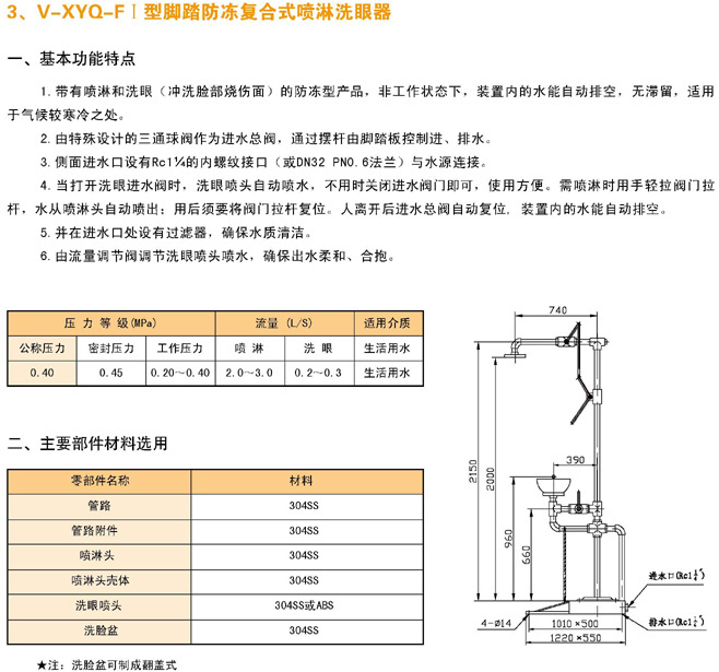 V-XYQ-FⅠ型脚踏防冻复合式喷淋洗眼器 | V-XYQ-FⅡ型脚踏防冻洗眼器 |