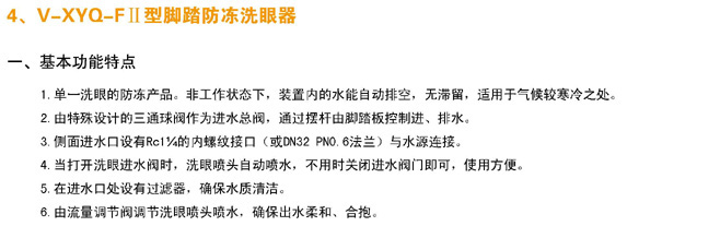 V-XYQ-FⅠ型脚踏防冻复合式喷淋洗眼器 | V-XYQ-FⅡ型脚踏防冻洗眼器 |