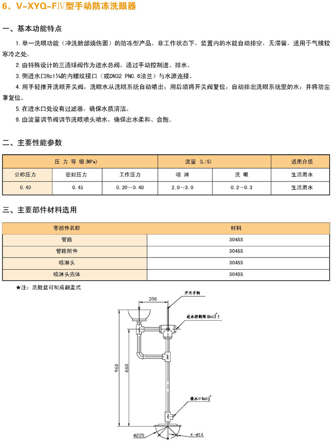 V-XYQ-FⅢ型手动防冻喷淋器 | V-XYQ-FⅣ型手动防冻洗眼器 |