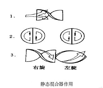 (3) 反转作用。在混合器内水流经右旋元件和左旋元件的旋转方向相反交替,提高了混合接触效率。